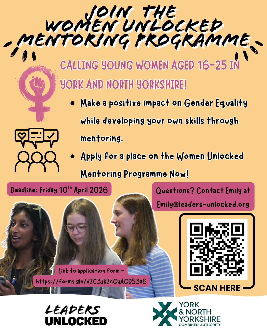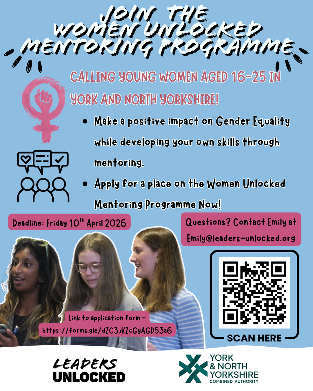 We are inviting young women and girls aged 16-24 across North Yorkshire and York to take part in the Women Unlocked Mentoring Programme.